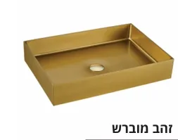 טיפ לעיצוב: כיור מלבני בגוון זהב מוברש מתאים במיוחד לחללים בעלי עיצוב מינימליסטי או תעשייתי. שלבו אותו עם משטחי עץ כהים להבלטת הגוון היוקרתי, או עם משטחי שיש בהירים ליצירת מראה קלאסי. הוסיפו אביזרים משלימים בגווני זהב, שחור מט או נחושת להשלמת המראה.