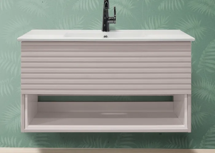 החזית בנויה מ-MDF ירוק, המיועד לסביבה לחה ומספק חוזק ואמינות.