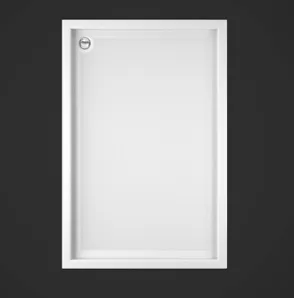 אגנית רחצה מלבנית בעיצוב נקי ומודרני, מתאימה למקלחונים חזיתיים ולחדרי רחצה בעיצוב עכשווי.
