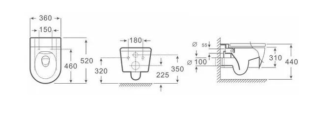 אסלה תלויה בעיצוב מינימליסטי ואלגנטי, המשלבת טכנולוגיית רימלס (ללא שוליים) לניקוי קל ושטיפה יסודית בכל שימוש.