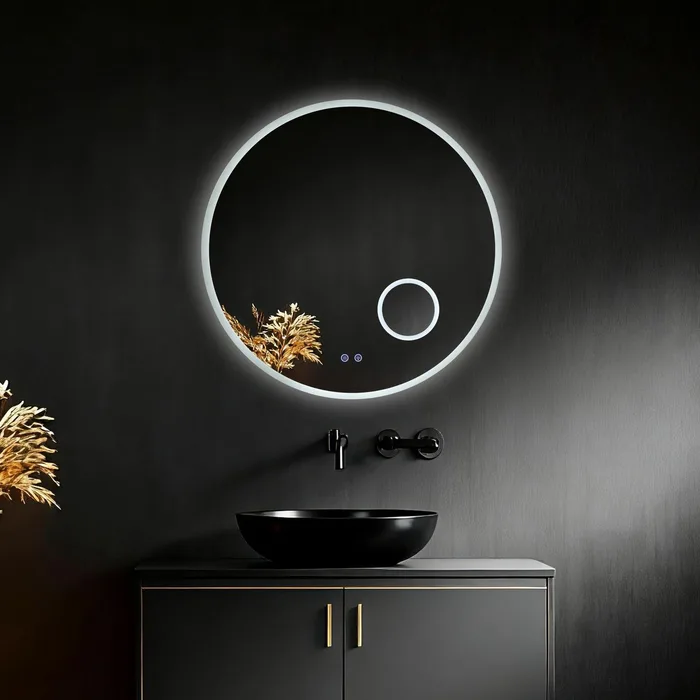 מראה עגולה יוקרתית בקוטר 80 ס״מ עם תאורת LED היקפית חזקה ונעימה לעין.