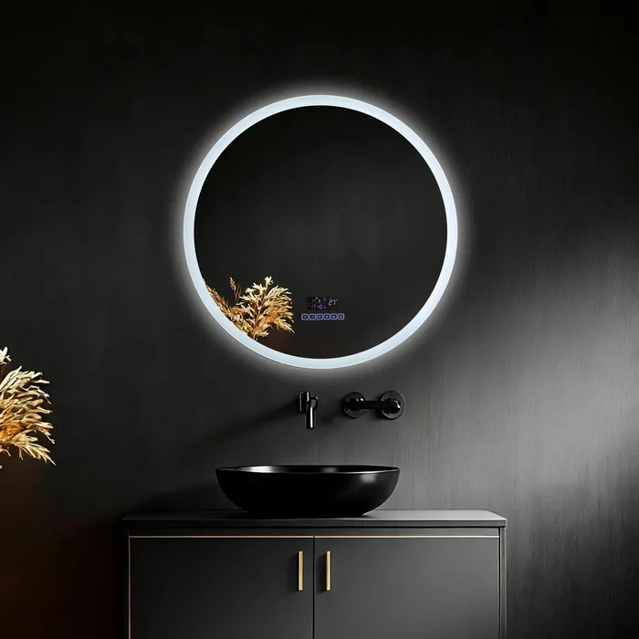 ORA מראה חכמה קוטר 60 ס"מ תאורת LED ב־3 צבעים שעון דיגיטלי, מד טמפרטורה וזוג רמקולים מובנים