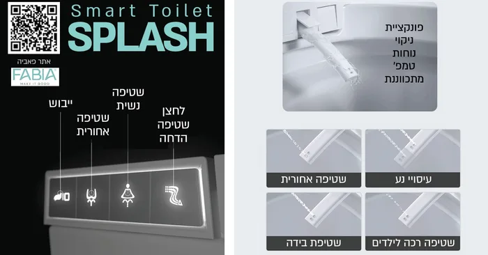 SPLASH היא הבחירה המושלמת למי שמחפש רמת היגיינה גבוהה, נוחות חכמה ועיצוב מתקדם – הכל במוצר אחד מרשים ומדויק.